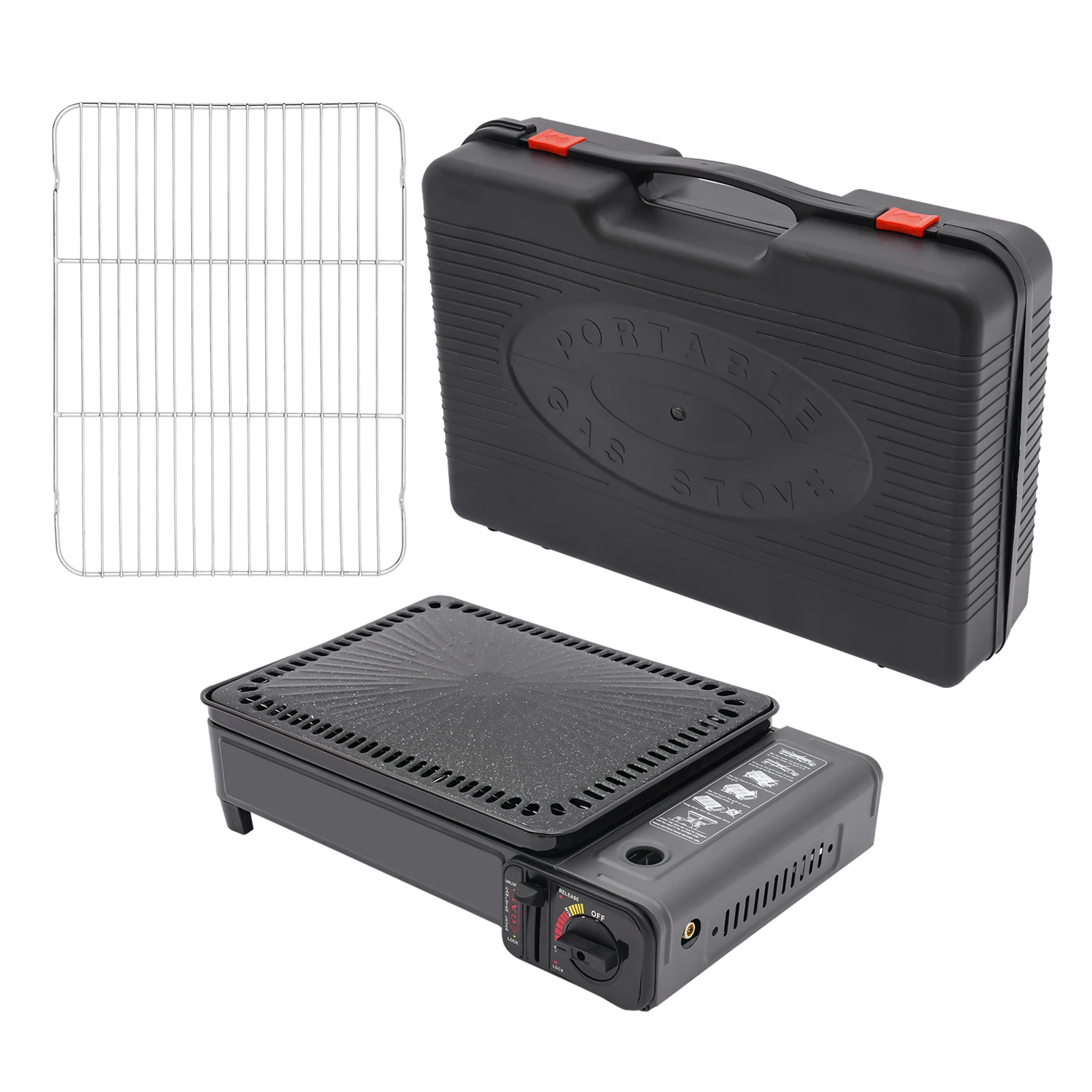 Butane Grill Stove Portable Camping Table Grill Outdoor Gas Stove Black with Grill Net For Picnic, Garden, Camping, Travel